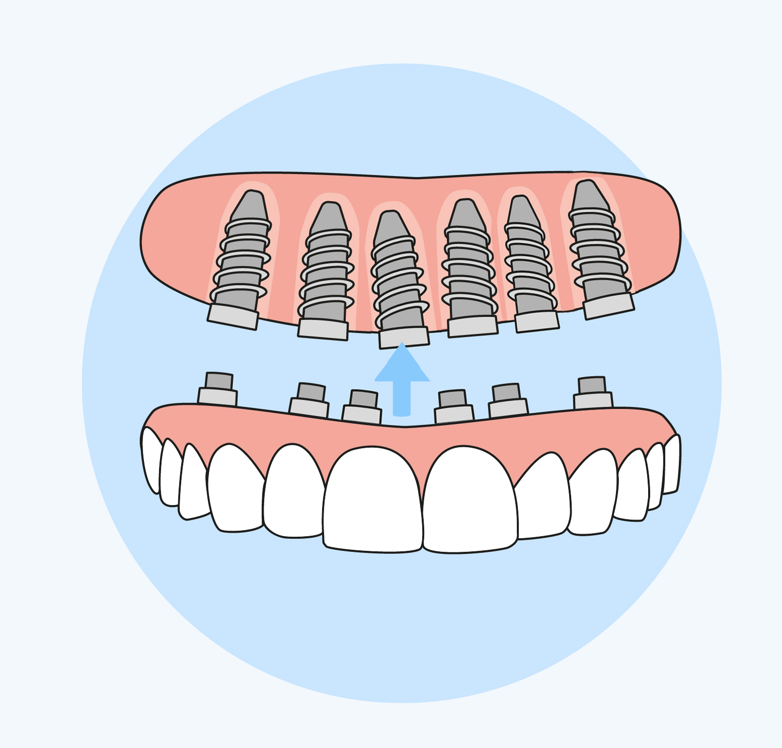 “All on Six” System with Fixed Porcelain or Acrylic Bridge
